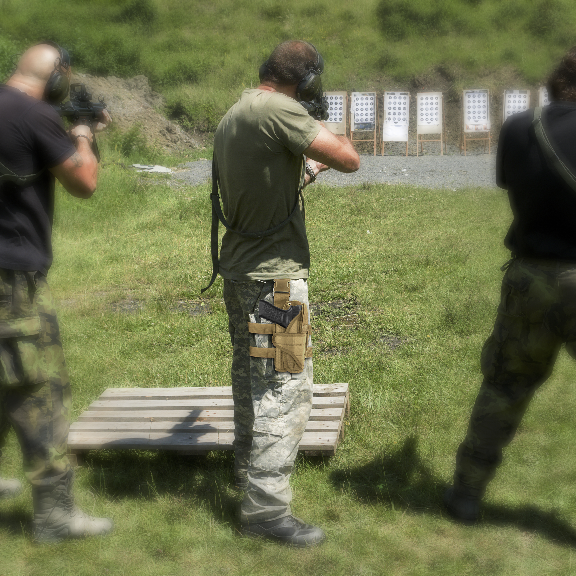 Designed to withstand the toughest outdoor conditions, the military thigh holster is made of high quality 500D nylon.  It is waterproof, scratch-resistant, wear-resistant and completely adjustable. The thigh holster also allows you to easily adjust the retention strap, the magazine retention strap, the ride on the holster, and the muzzle height to meet your requirements.